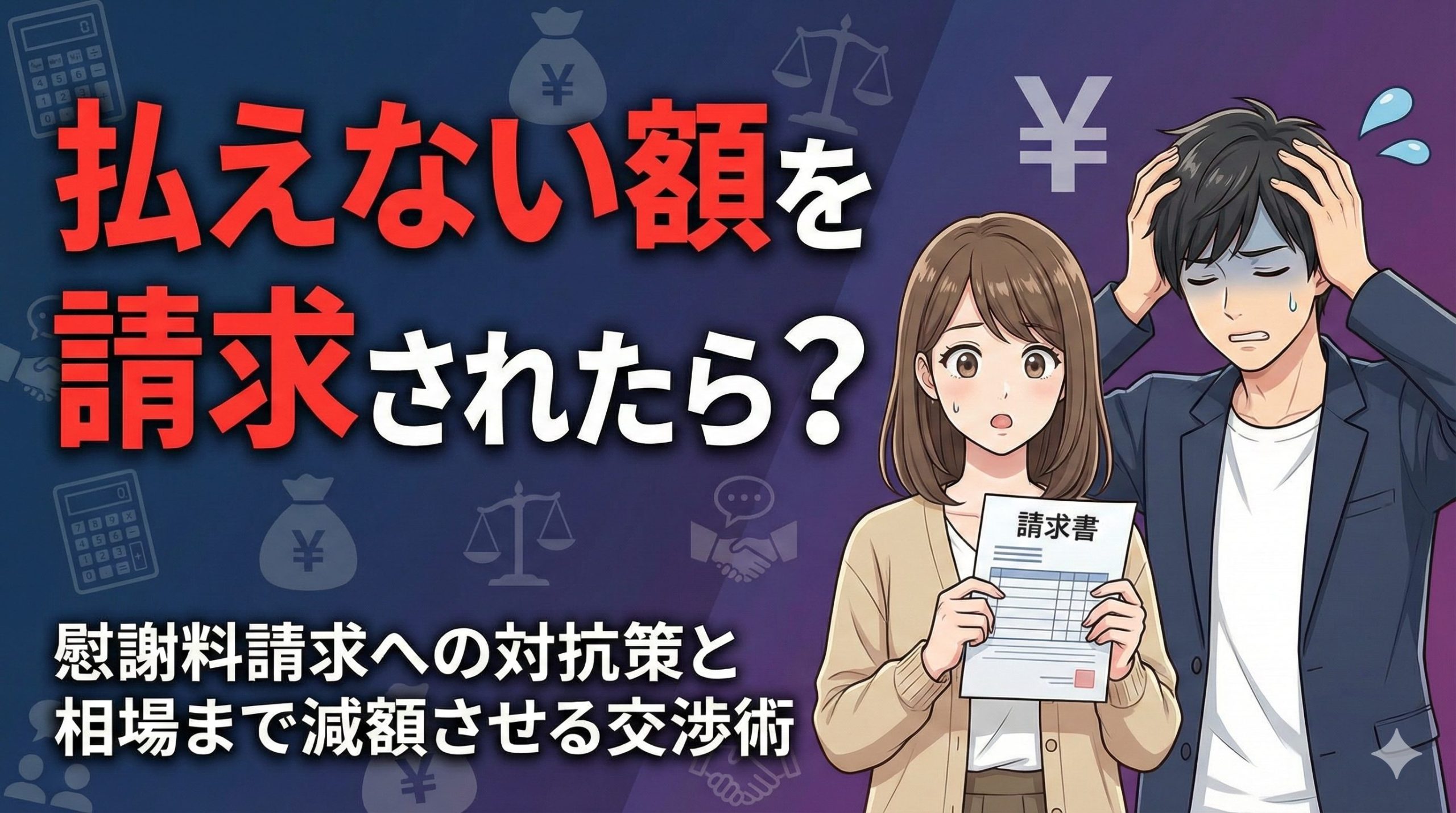 実は、正しい知識を持って交渉することで、現実的な相場まで減額できるケースは非常に多くあります。この記事では、高額な慰謝料を請求されて焦っているあなたのために、プロの視点で「減額交渉の具体的な手順」と「払えない時の対処法」をわかりやすく解説します。