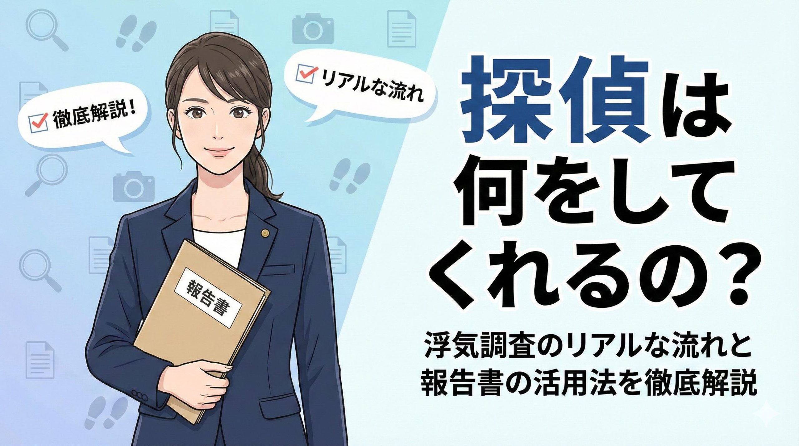 この報告書は、今後の話し合いや裁判で非常に重要な武器になります。受け取った後は大切に保管してくださいね。また、調査後のアフターフォローとして、弁護士の紹介やカウンセリングを行っている事務所もありますので、必要に応じて活用しましょう。