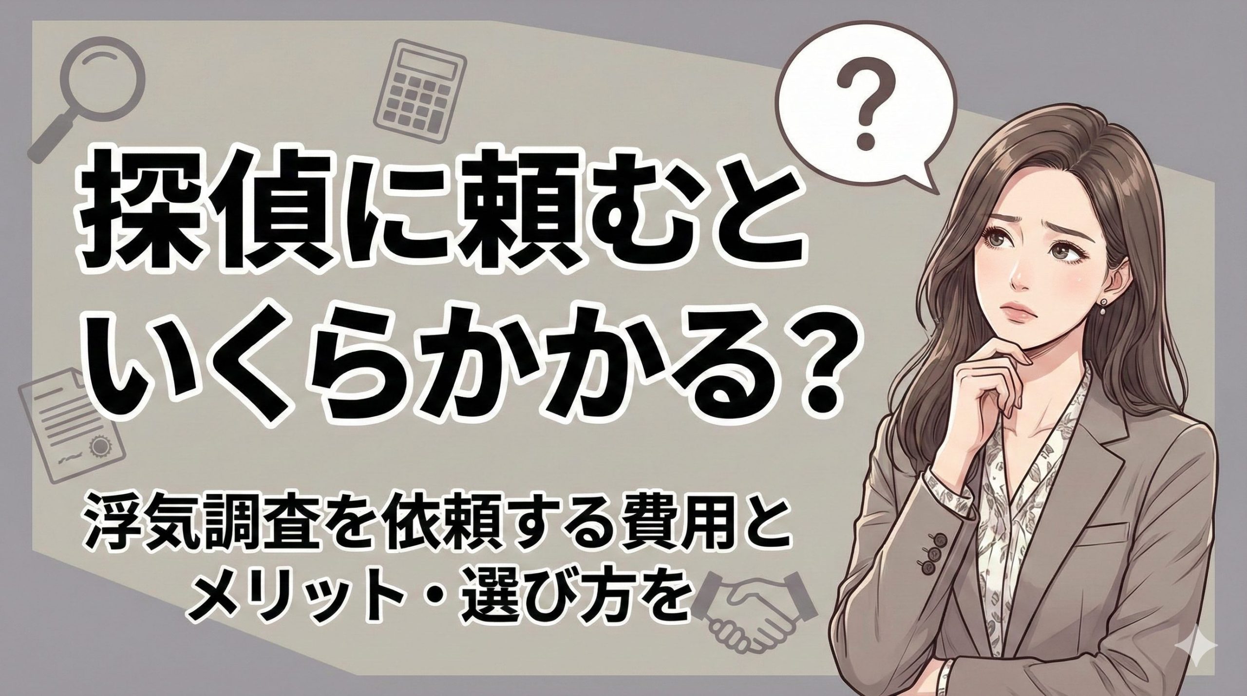 実は、浮気調査を依頼する費用は工夫次第で抑えられますし、プロに頼むメリットは単に証拠を掴むだけではありません。この記事では、私が長年の経験で培った知識をもとに、費用の相場や失敗しない選び方をわかりやすくお話しします。