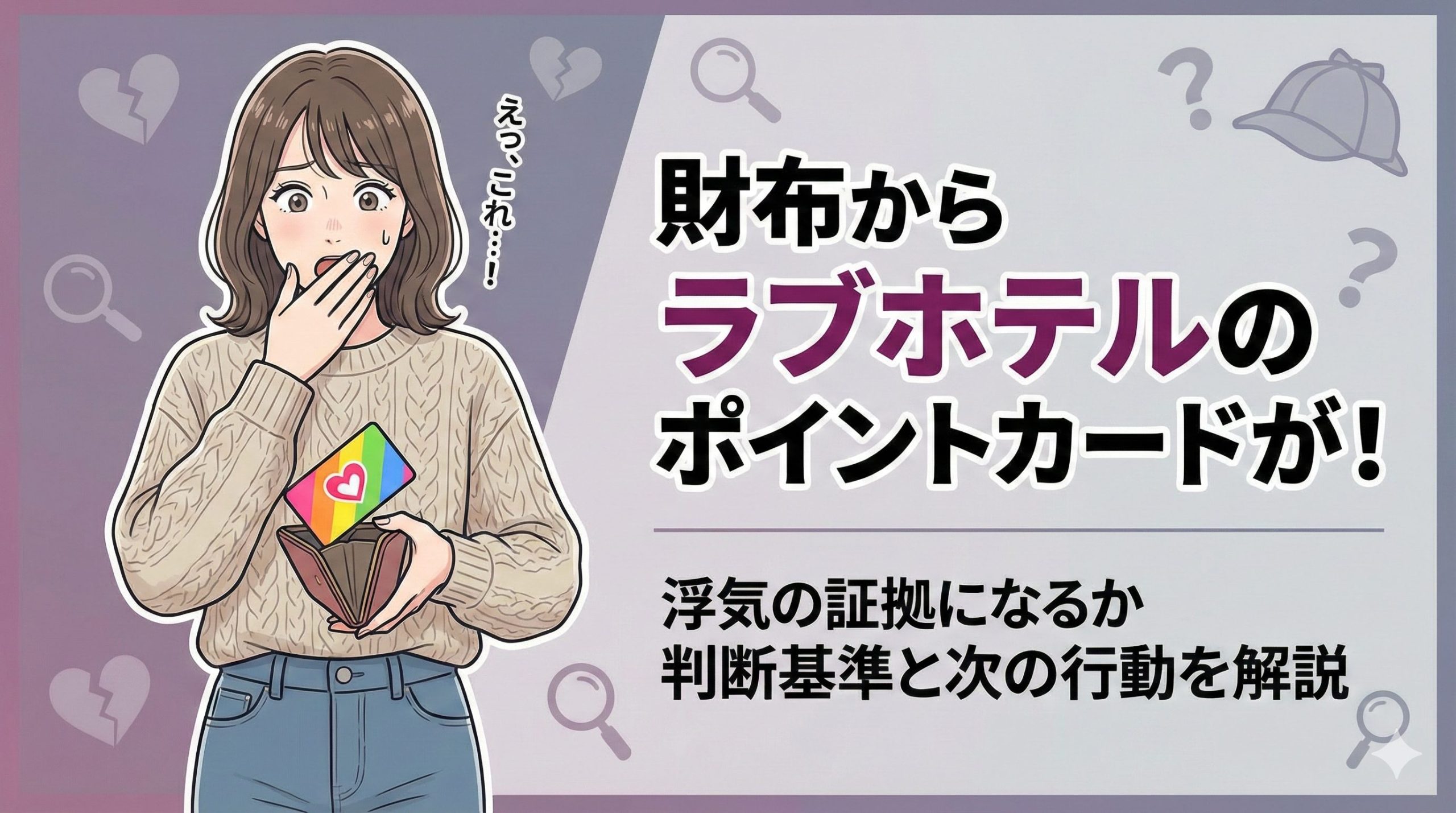 夫に「疑っていること」すら悟られずに証拠を掴めれば、その後の話し合いでも圧倒的に有利な立場に立てます。相手が油断しているうちに証拠を押さえるのが、成功の秘訣ですよ。