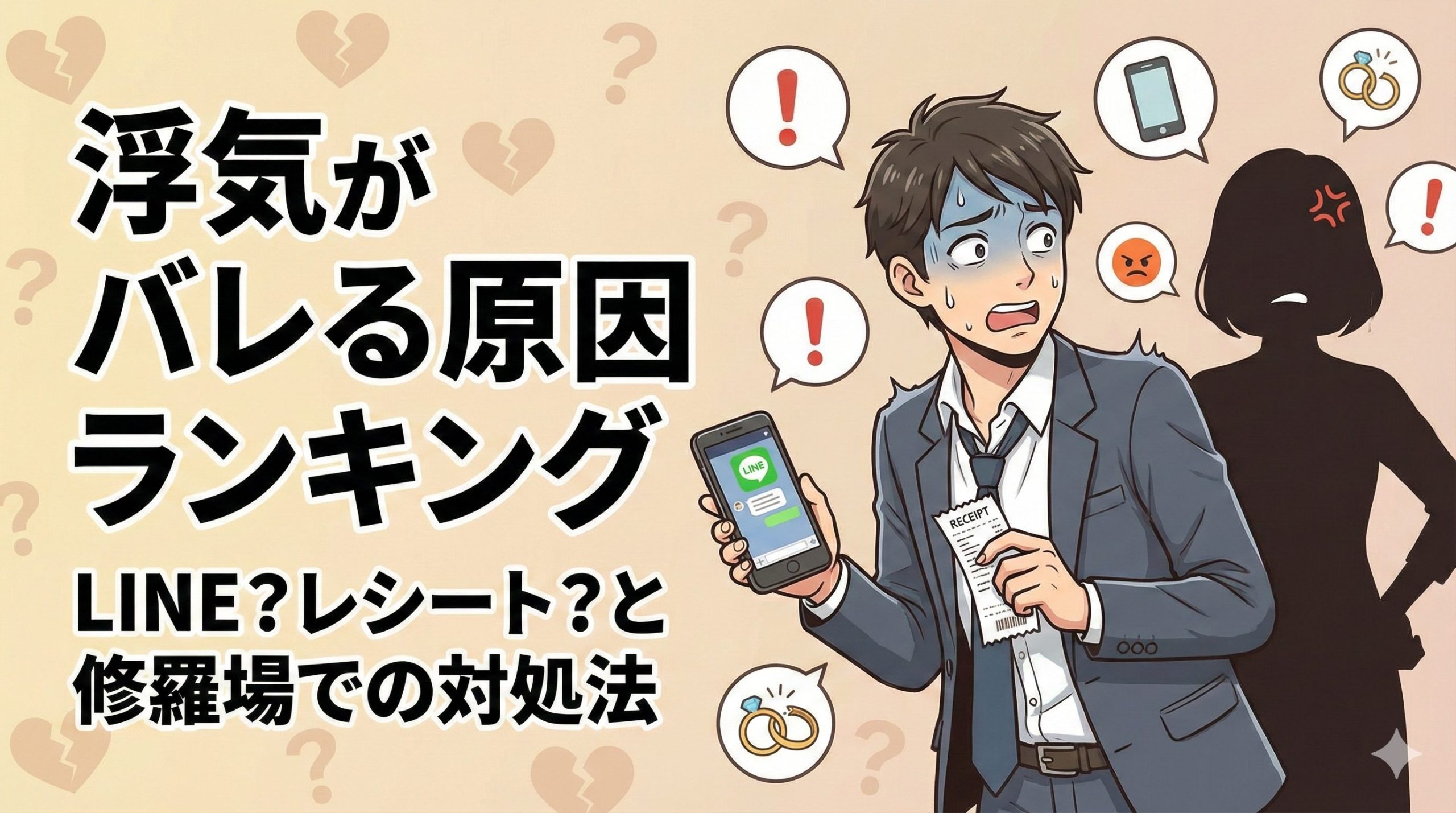 LINEのやり取りやレシートなどは「状況証拠」に過ぎず、それだけでは「肉体関係があった」と証明するには弱い場合があります。自分でできる範囲の調査に行き詰まりを感じたら、無理をしてバレる前にプロにバトンタッチするのが賢明な判断です。